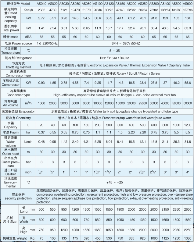 AS 系列橡塑工業(yè)冷水機(jī)是根據(jù)橡塑工業(yè)的需求專業(yè)開發(fā)的一種新型工業(yè)冷水機(jī),該系列具有耐腐蝕,易操作, 維保簡便等特點(diǎn)。主要部件均優(yōu)先選用進(jìn)口品牌產(chǎn)品,整機(jī)水路系統(tǒng)全部優(yōu)先采用不銹鋼制成,更增加了設(shè)備的結(jié)實(shí)耐用性,可滿足橡塑工業(yè)領(lǐng)域生產(chǎn)過程中的制冷要求,是橡塑產(chǎn)業(yè)中制冷設(shè)備的理想選擇!